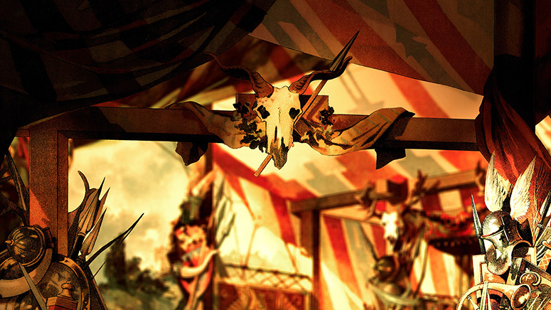 Das mit Photoshop bearbeitet türkische Zelt steht im Vordergrund, der Landungsplatz in Amerika mit ersetztem Himmel im Hintergrund. Diese beiden Papiertheaterdekorationen stammen von Trentsensky. Die Durchsicht vor dem Hintergrund stammt von Scholz. Weitere Informationen